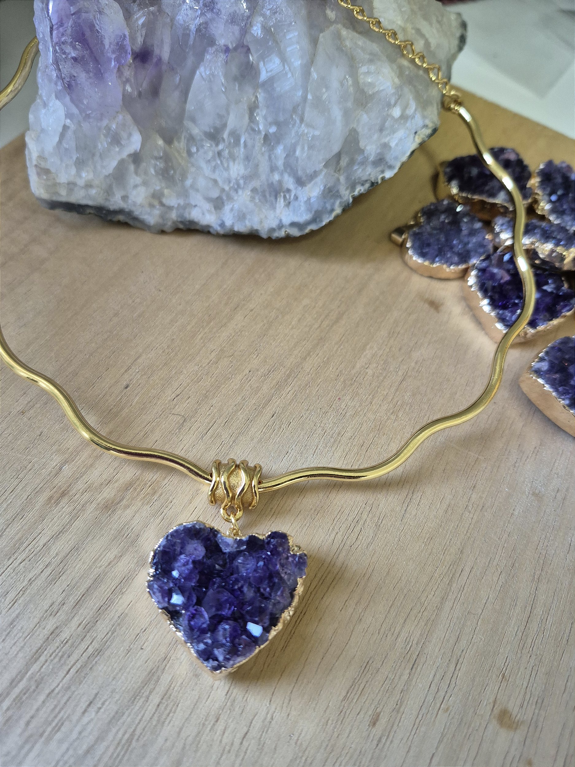 O Colar Alvorada Onda da Riluce é confeccionado com aro de metal ondulado com corrente extensora e pingente de pedra natural.
