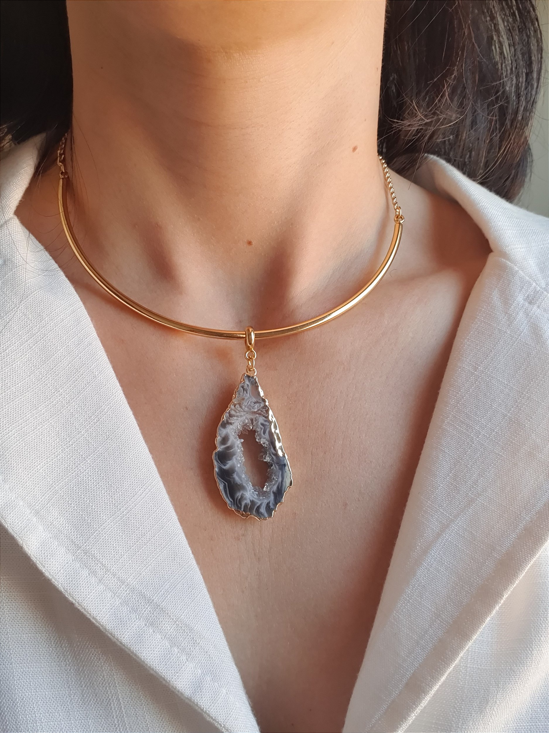 Colar em aro com pedra de agata.