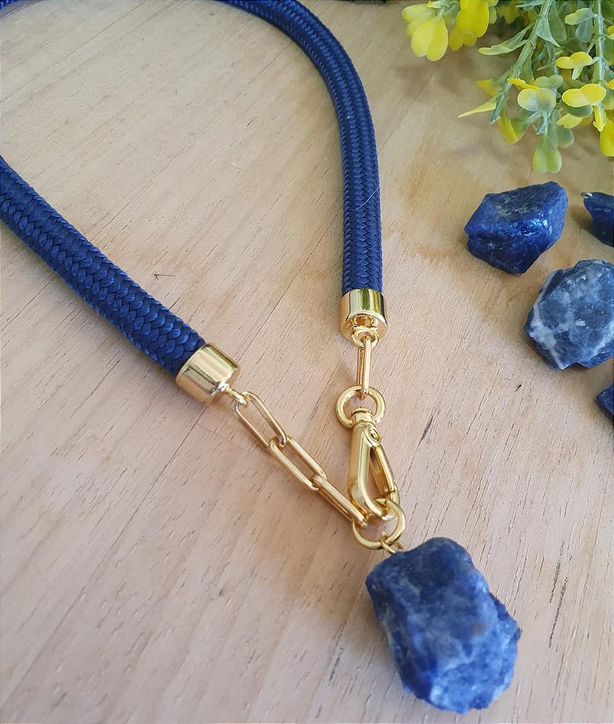 Colar em corda de polipropileno 8mm e pedra sodalita.