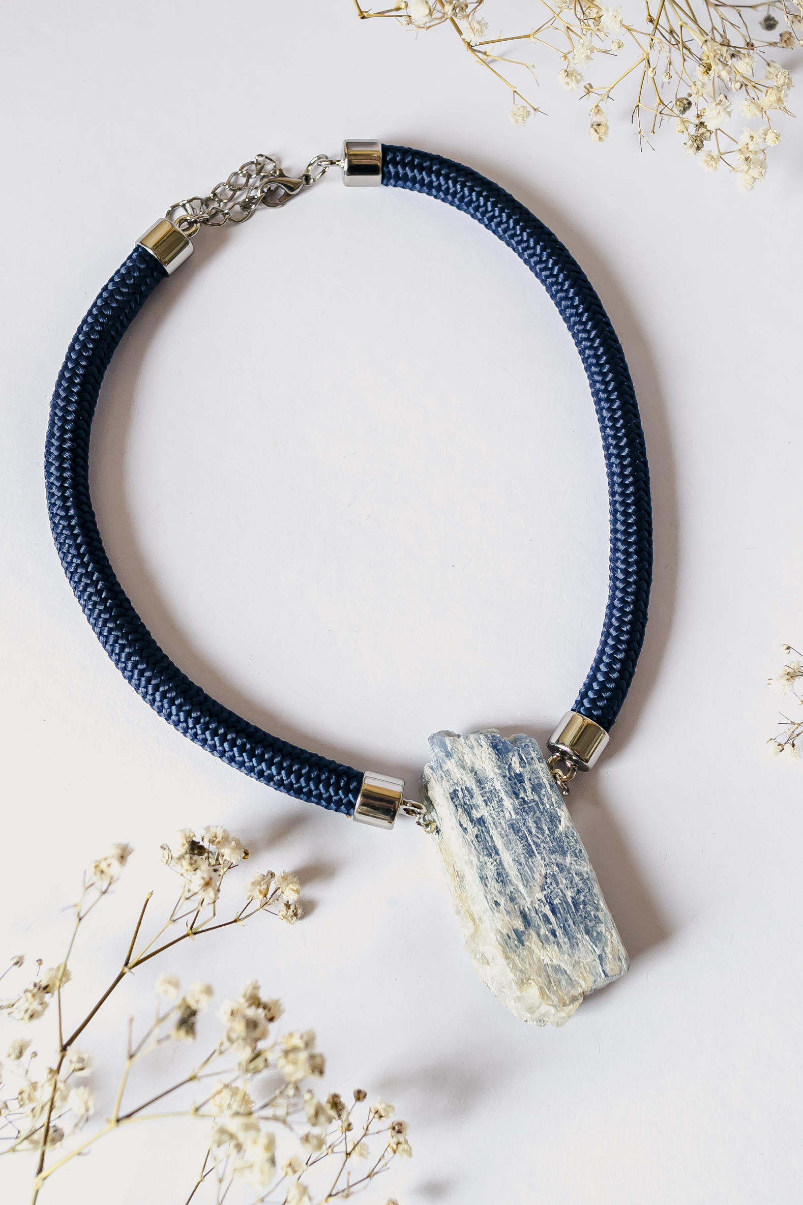 O Colar Atria Corda da Riluce é confeccionado manualmente com corda de polipropleno e pedra natural com dois furos.