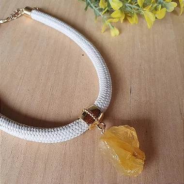 Colar em corda de polipropileno 8mm e corrente dourada com pedra hematóide.