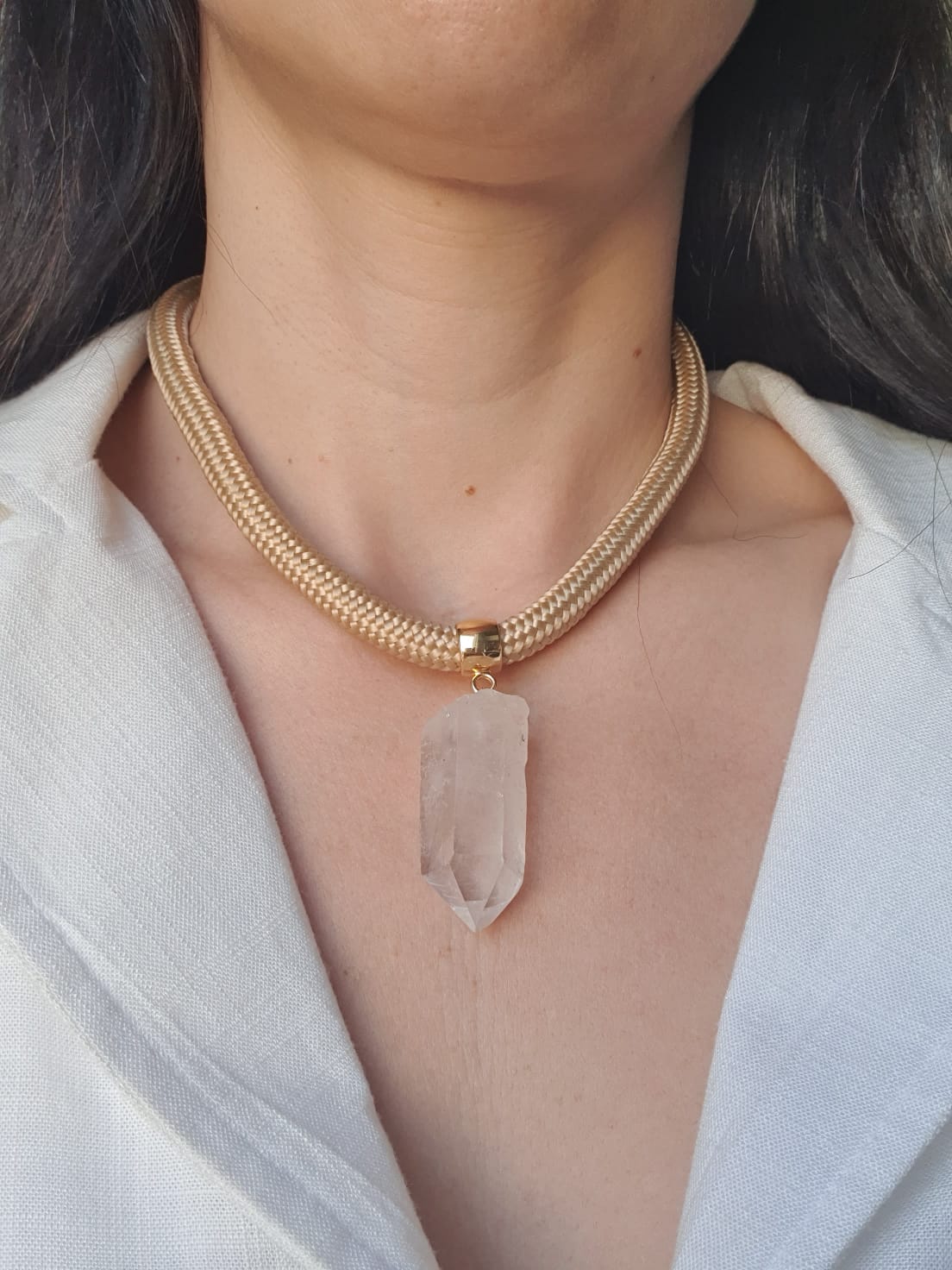 Colar em corda de polipropileno 8mm com pingente de ponta de cristal.