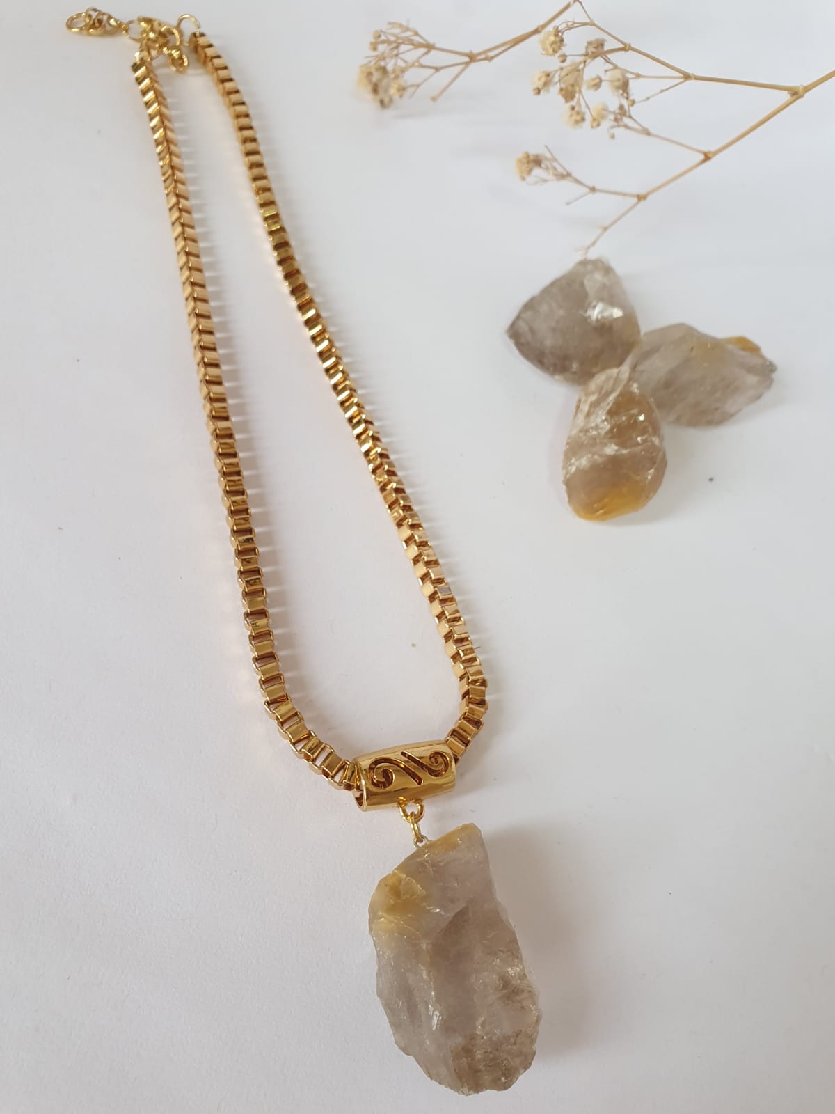 Colar em corrente dourada com pedra de drusa de cristal