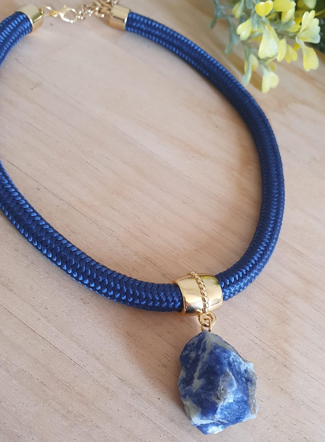 Colar em corda de polipropileno 8mm e sodalita.