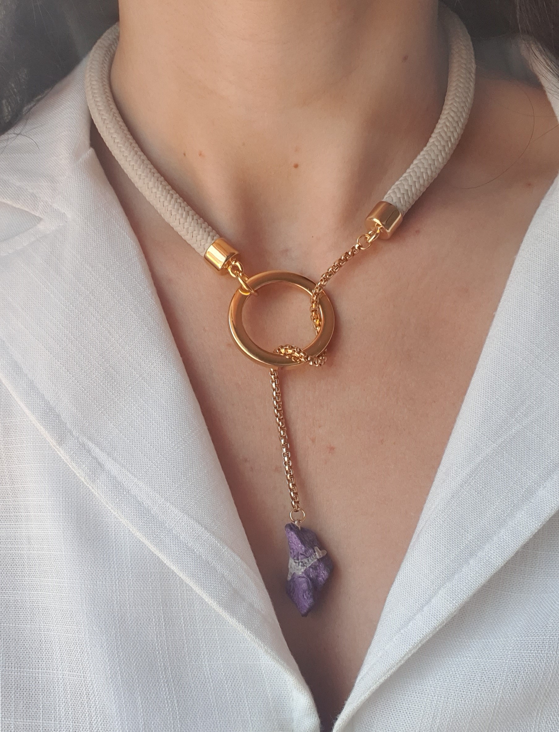 Colar em corda de polipropileno 8mm com pedra de purpurita